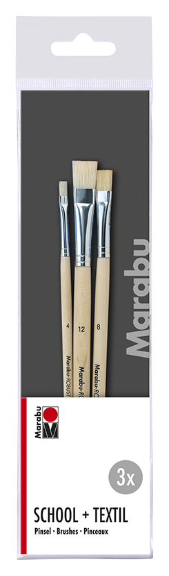 Marabu Kids+Textil je súprava 3 štetcov Marabu Robust plochý, veľkosť 4, 8, 12. Je ideálna pre škôlky, predškolskú výchovu a školy. Výborne sa hodí na maľovanie na textil, ale tiež na nanášanie podkladových farieb, na maľovanie akrylovými a olejovými farbami, a pod
