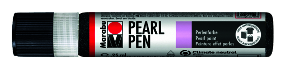 Marabu PEARL PEN je perleťová farba na vodnej báze, ktorázasychá do lesklého/trblietavého povrchu.Formuje sa do vyvýšenýchpolperličiek, ktorých veľkosť je možné ľahko meniť pomocoumnožstvo nanesenej farby.Farba PEARL PEN je vegánska a vhodná pre mnoho svetlých atmavých povrchov, ako sú textílie (až 20% syntetickýchvlákien, doba sušenia 72 h, jemné pranie 30 ° C) alebo papier, drevo,kameň, sklo a porcelán.