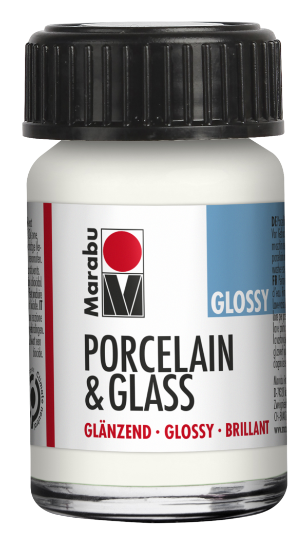 Porcelain & Glas - lesklá transparentná farba na vodnej báze.Na maľovanie na sklo, porcelán, keramiku a akrylové sklo atď. Nie je nutné vypaľovanie: farba zaschne po troch dňoch, potom je možné umývať v umývačke pri teplote max. 50 °C.Povrch musí byť zbavený mastnoty.Farbu dobre premiešajte.V kombinácii s Porcelain & Glas Painter je možné farbu bez problémov vypáliť 30 min.pri 160 °C.