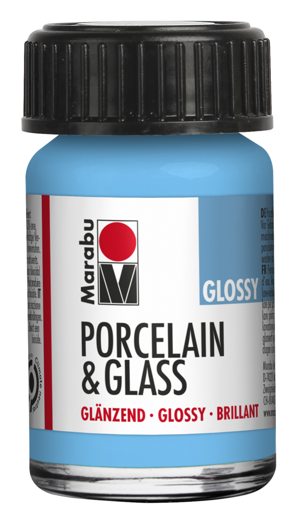 Porcelain & Glas - lesklá transparentná farba na vodnej báze.Na maľovanie na sklo, porcelán, keramiku a akrylové sklo atď. Nie je nutné vypaľovanie: farba zaschne po troch dňoch, potom je možné umývať v umývačke pri teplote max. 50 °C.Povrch musí byť zbavený mastnoty.Farbu dobre premiešajte.V kombinácii s Porcelain & Glas Painter je možné farbu bez problémov vypáliť 30 min.pri 160 °C.